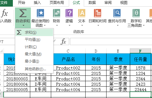 而對(duì)圖二的(de)F列進行求和(hé)就再簡單不過了(le)。選中F列數據,點擊公式-自動求和(hé)-求和(hé),就立馬得(de)到了(le)結果。